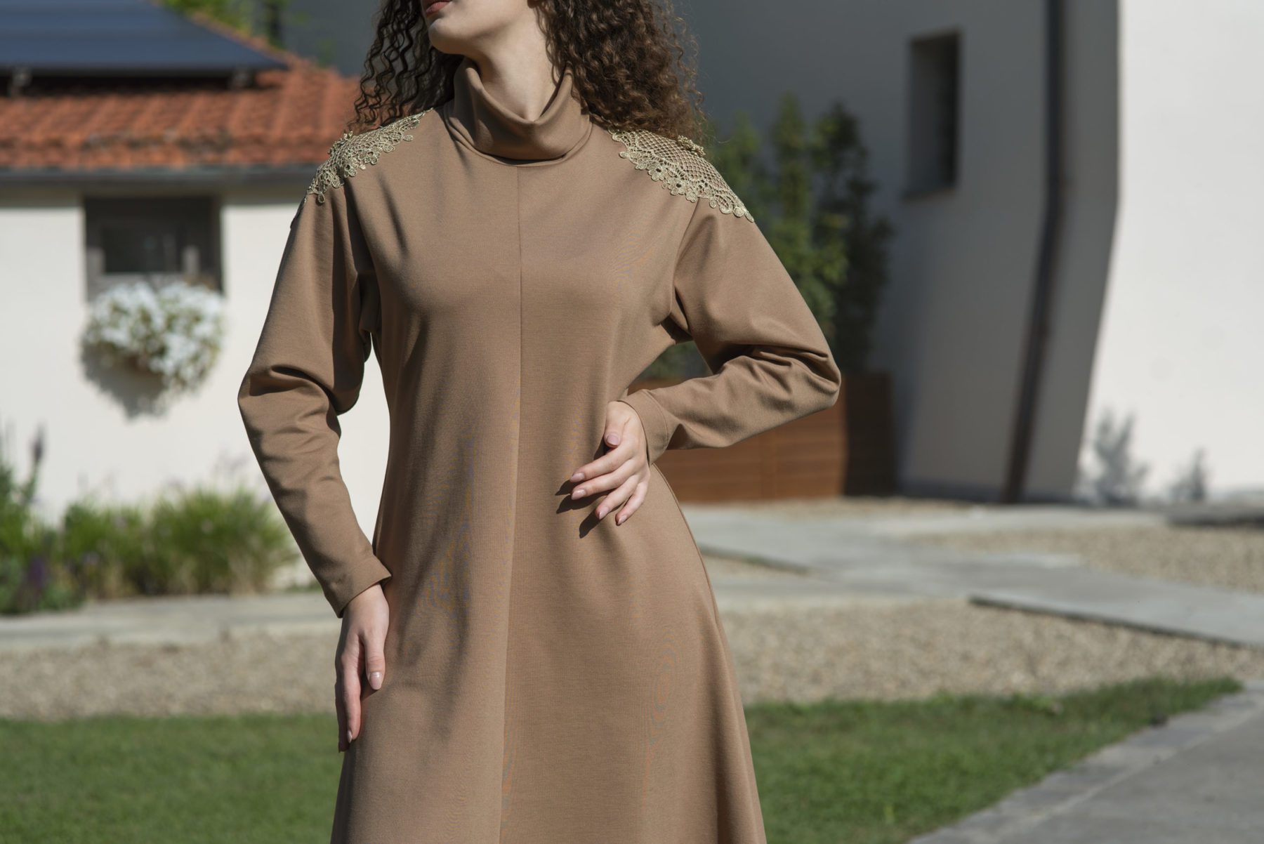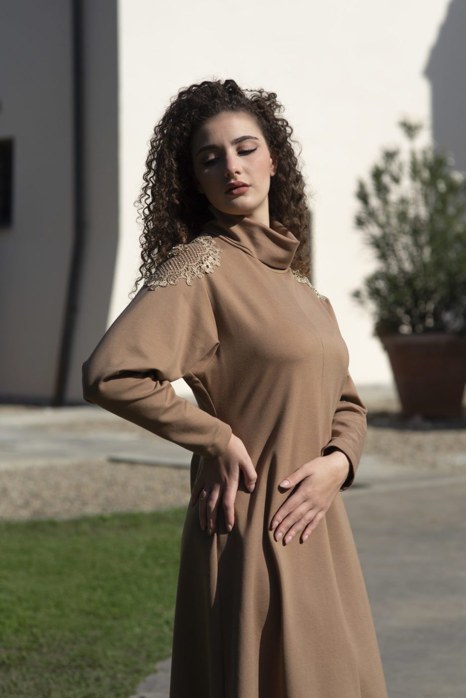 Abito Aurora cammello – collo alto