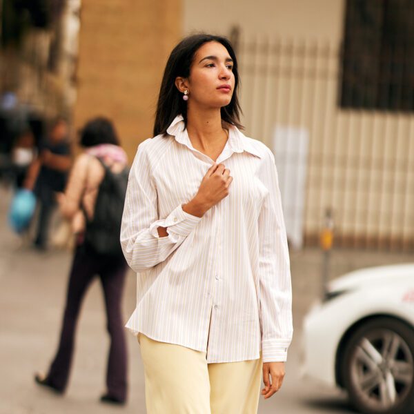 Pensata per essere indossata sia chiusa con i bottoni da sola oppure sganciata con sotto il suo top in abbinamento cromatico.