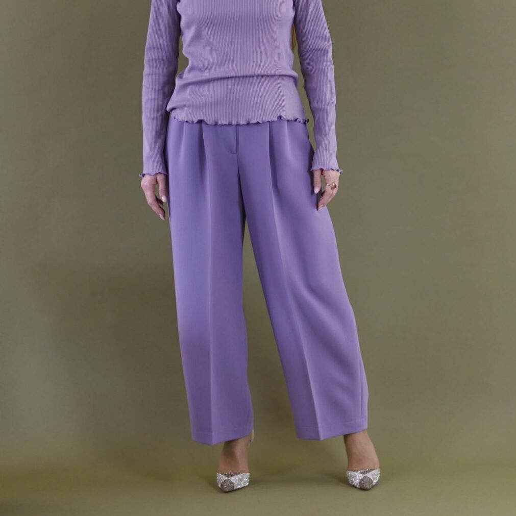 Pantalone taglio maschile con due pieghe profonde sul davanti che donano ampiezza e movimento.