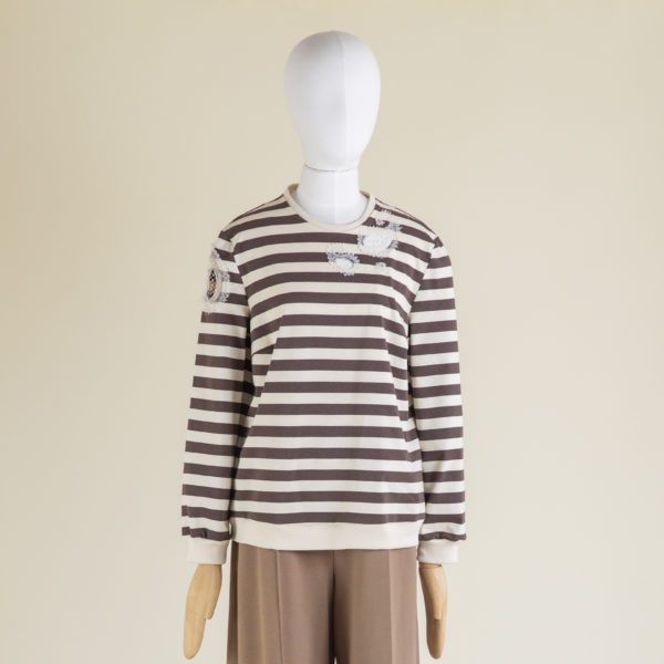 Il polso e il fondo sono rifiniti con bordi sempre in felpa alti 5 cm.